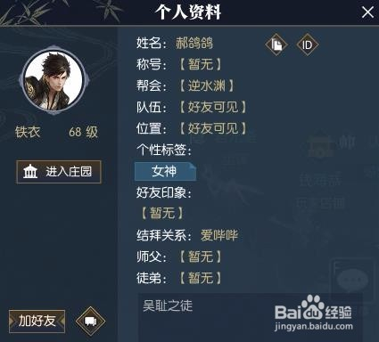总之,逆水寒是无法标的目的其他游戏一样在玩家信息里直接看对方装备的,老友也不可(但在帮会可以算作员的装备评分)