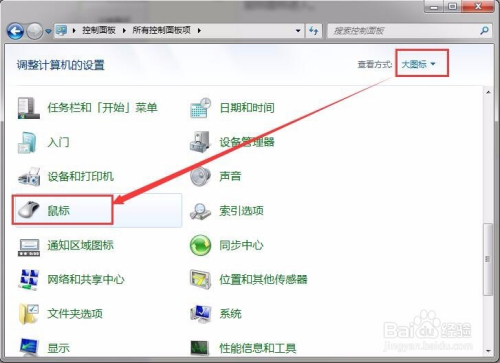 设置当作年夜图标之后,我们就可以在节制面板设置东西中找到鼠标的图标了,点击鼠标图标进入。
