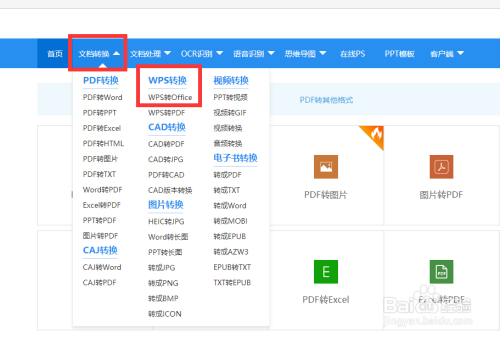 找到对应的转换功能栏目—“文档转换”——“wps转换”,进入到本家儿界面;