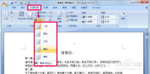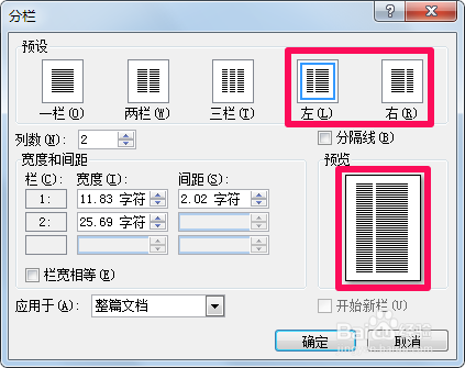 选择“左,右”可以使文章靠左分栏或靠右分栏,结果如图。