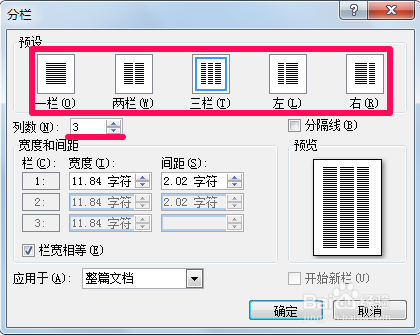 在列数中可以输入更多列,同时可以在预览中看到结果。