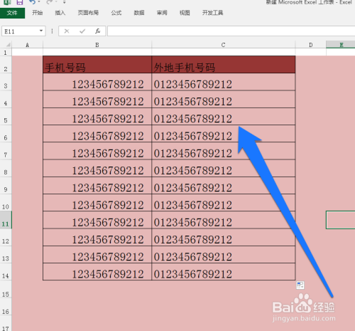 然后我们在手机号码的外埠手机号列,选择一个单位格。