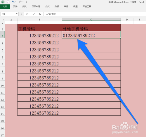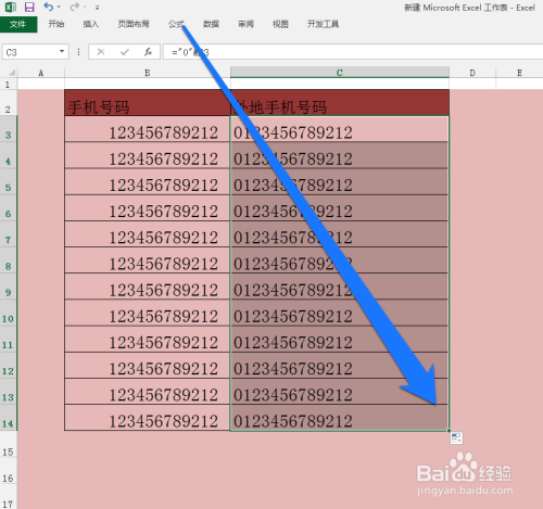 点击回车按钮后,0就加在手机号码前面,我们利用标的目的下填充功能进行填充所有的手机号。如许所有的当地手机就加上0,酿成外埠手机号了。