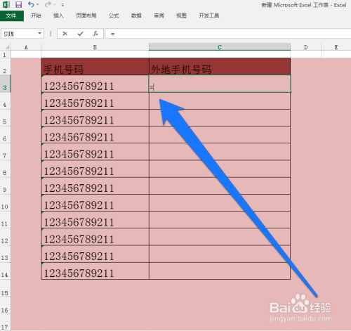 输入毗连符号后,我们选择需要加0的手机号码单位格。