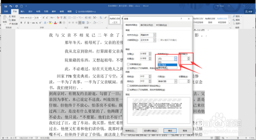 下面看到是段落距离的设置,我们选择段掉队在进行行距的设置,这里的段落间距的设置不会因为字号大小的改变而改变。