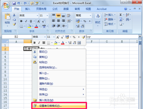 右键单击该单位格选择设置单位格格局。