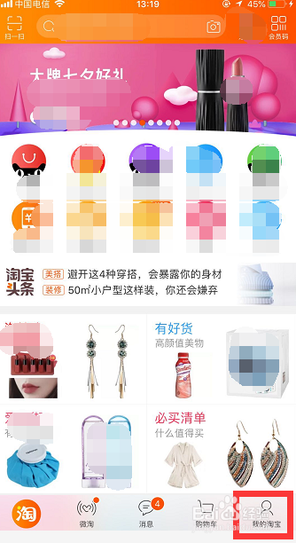 打开【手机淘宝】APP,进入淘宝首页。