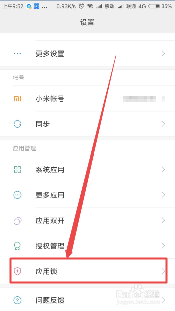 在打开的设置页面中找到应用锁选项,点击它。