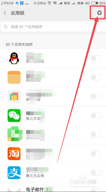然后在打开的应用锁界面中点击右上角的齿轮图标。