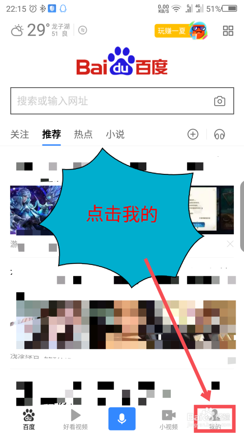 同样在百度首页,点击底部导航栏中的我的选项。操作如截图所示