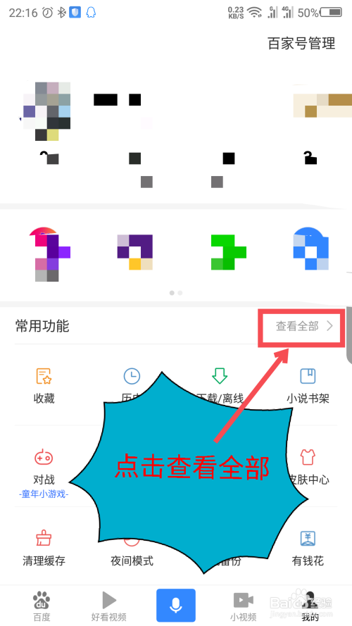 打开我的界面后,在常用功能栏中,点击后面的查看全数。操作如截图所示