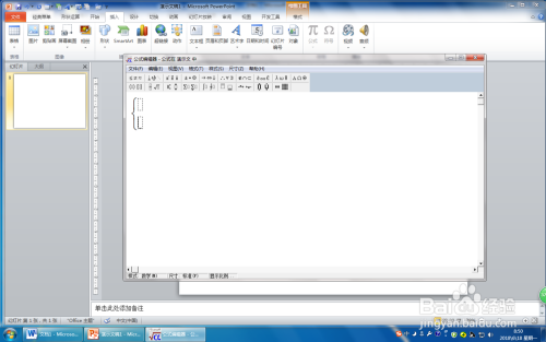 第三步:在公式编纂器中单击“围栏模板”,鄙人拉列表中选择左侧年夜括号东西,按一次回车键,然后封闭公式编纂器,左侧的年夜括号插入幻灯片窗格。申明:这里可以直接输入方程,为了对方程组中的方程设置动画所以分隔输入。