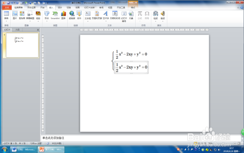 第五步:按着Ctrl键标的目的下拖动幻灯片窗格里插入的第一个方程,复制出一个。