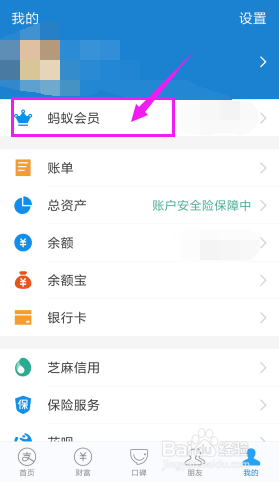 点击【蚂蚁会员】。