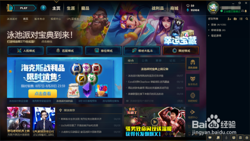 首先我们登录英雄联盟客户端,可以选择直接登录或者是经由过程Wegame进行抄写,期待各元素加载完毕后,来到本家儿界面