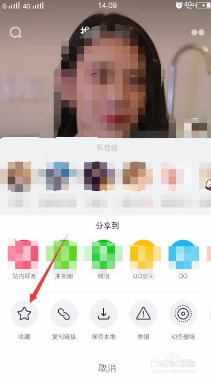 在分享中左下角位置点击保藏。