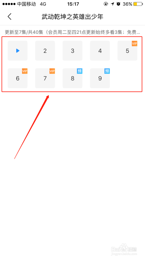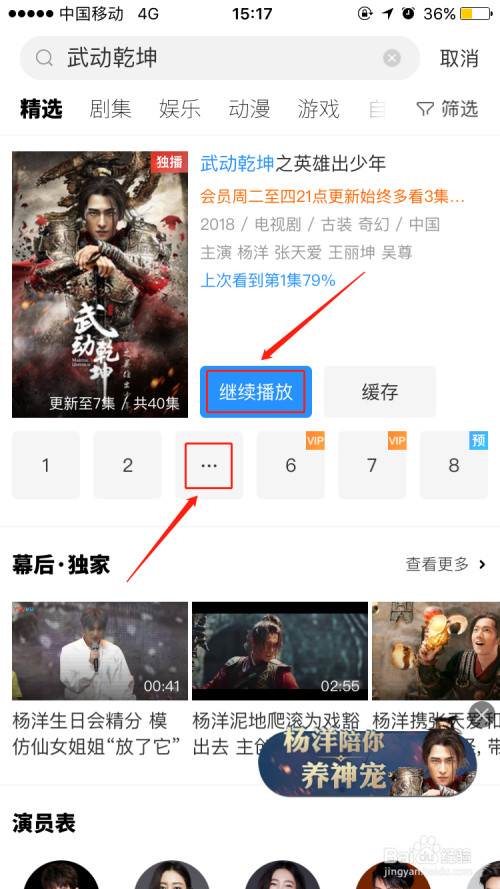 这时我们可以看到我们搜刮的视频的合集,一般默认为从第一集或者你前次不雅看遏制的处所进行播放,若是有特定选集需要,点开省略号【...】标记,就可以显示所有集数,选择本身需要的那一集即可