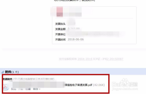 半晌后去邮箱查看,我们在附件里面点击下载电子发票。打印后即可利用了。