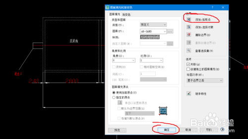 点击鸿沟“拾取点”或“选择对象"确定鸿沟,点击确定即可设置图形材料或颜色。