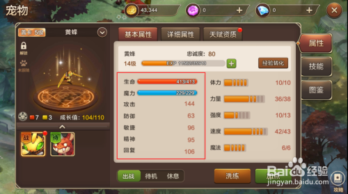 当然总体战力还需要算上宠物,同样在本家儿画面上点击宠物头像。显示宠物的各项属机能力。