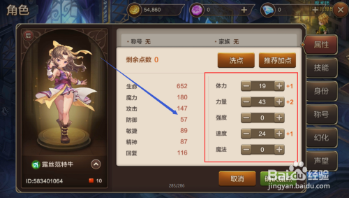 接下来在脚色页面看到本身脚色的各类能力,包罗生命、魔力、进犯等分项,这些都是战斗力的提现。