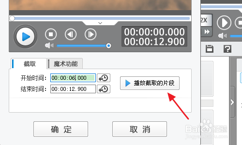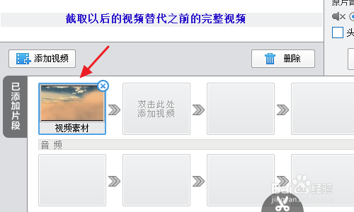 截取完毕今后,我们还可以播放截取的片段,然后适才添加的原始视频即可主动更改为新的这段视频,如图二...