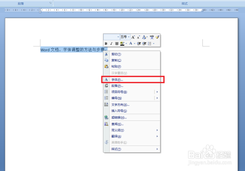 选中今后点击鼠标右键,鄙人拉菜单中点击字体