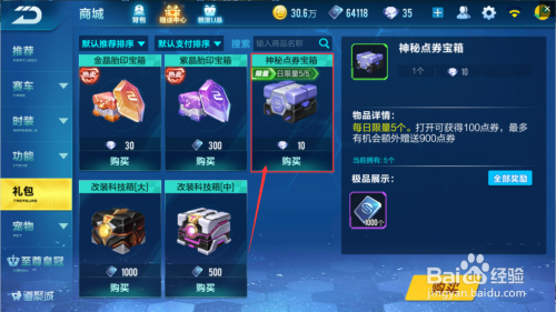 在商铺能用金币天天买三个精美点券宝箱,用钻石买五个神秘点券宝箱。必然要买,因为物超所值。一全国来能获得10*3+100*5=530点券。一周下来能获得530*7=3710点券。