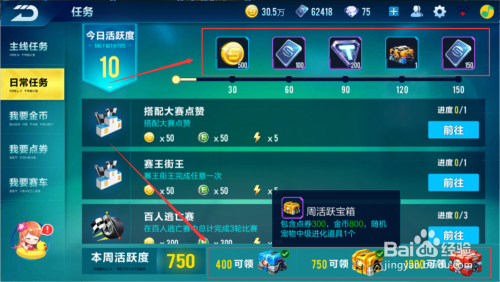 在日常使命必需做完。可以天天获得活跃度奖励的250点券,而且使命天天送200点券,周活跃宝箱奖励150+300+500=950点券。一周下来我们经由过程日常使命可以获得450*7+950=4100点券。