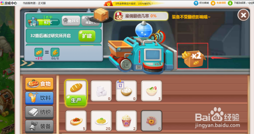 按照本身的需要可以出产N个本身需要的面包,同时每出产一个面包,会陪伴着2个经验值的增添。