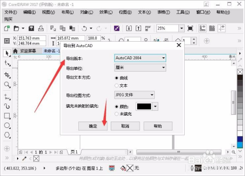 弹出导出到窗口,可选择导出对应软件版本,当然软件版本越低越好,其它项默认即可,点击确定完当作格局保留。