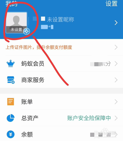 在我的页面,点击右上角的小我信息头像。