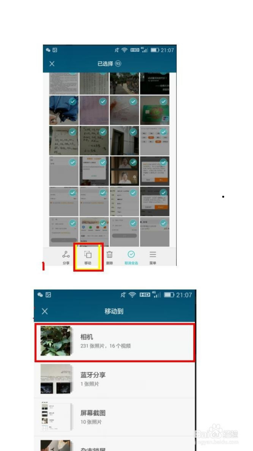 移动或者删除图片:长按图片呈现勾选后选择图片,点击移动——在移动到界面选摘要放置的相册。若是要删除,选择图片后,点击删除,在确认中再次点击删除就可以了。