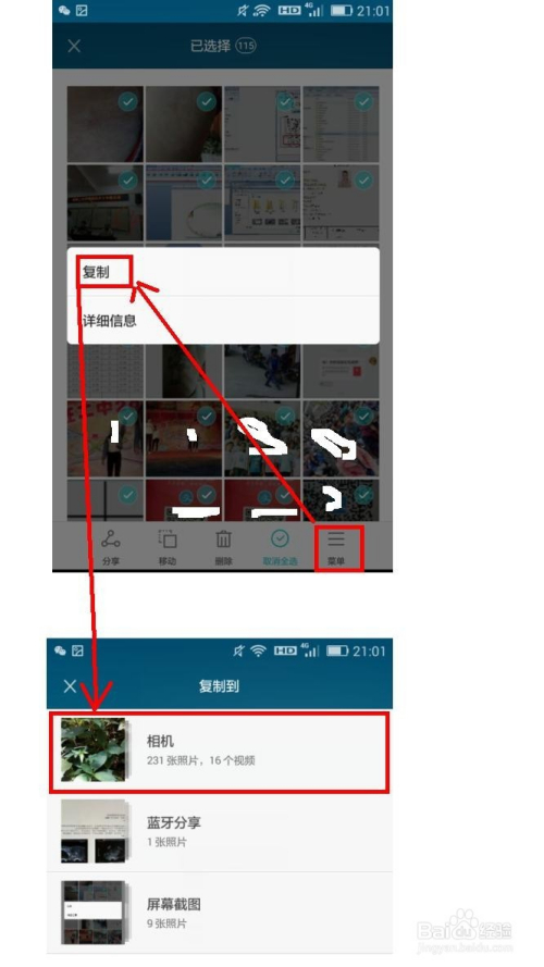 复制图片到别的的相册:打开微信或者QQ相册后,长按肆意图片——呈现图片勾选后,选摘要复制的图片——点击右上角的菜单——选择复制——选摘要复制到的相册