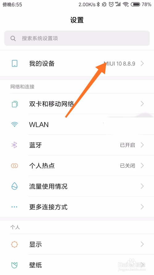 进入设置页面之后,我们首先看到的是设备,需要注重的是,必需是最新的MIUI10,方才更新的才能进行人脸解锁,如下图所示。