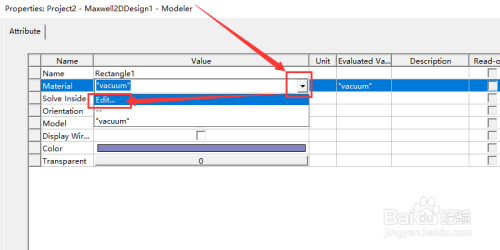 在参数界面中点击material栏的标的目的下图标,再点击Edit...。如许我们进入了材料选择页面。如图所示。