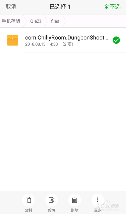 用接收文件的手机打开文件办理器,将文件夹拷贝到原位置,茄子快传文件目次:手机储存/QieZi/files/com.ChillyRoom.DungeonShooter