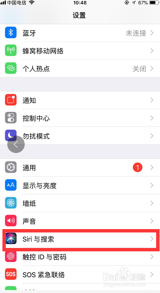 在设置界面找到【Siri与搜刮】选项,如图所示。