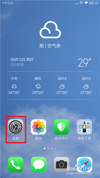 打开手机,在手机桌面上找到设置并点击打开设置功能。
