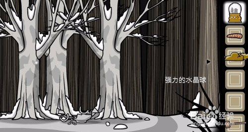 把松鼠跳到最左边,然后点击树上的冰锥,就能拿到松鼠皮和高兴果