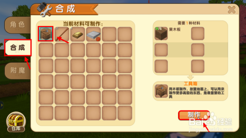 以刚开局举例,首先要收集必然数目木头,在背包平分解为木板,然后再合当作工作台。