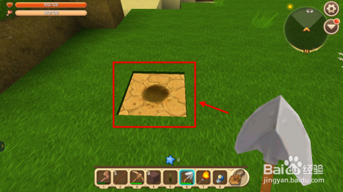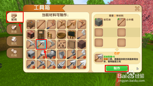 有了岩石块后就可以和小木棍一路,合当作石铲子了。
