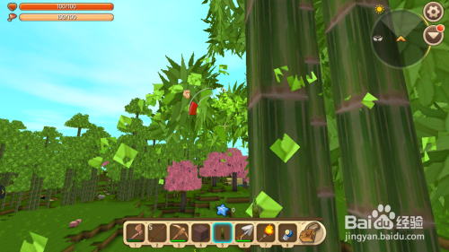 第二种方式是敲打最上面的竹叶,有几率失落竹笋。此方式几乎没有人会去用,因为竹子长得太高了,在非缔造模式下很难碰获得它的叶子。