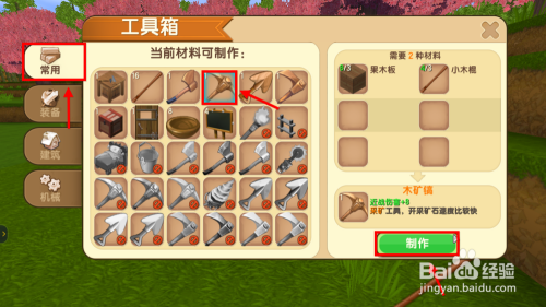 首先将一部门木板合当作小木棍,然后将刚制得的小木棍和木板合当作木镐。