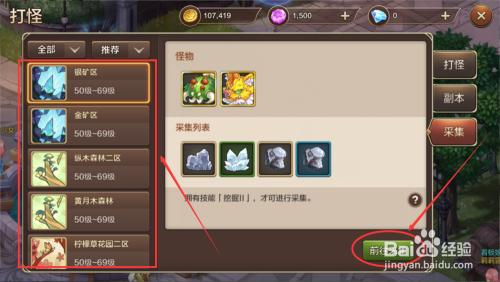 然后,我们在魔力宝物的采集选择页面,在左边选择好本身需要采集的材料在哪个副本,选择好之后,我们点击起头采集按钮 。
