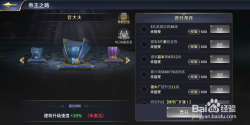 爵位特权:建筑进级速度增添20%