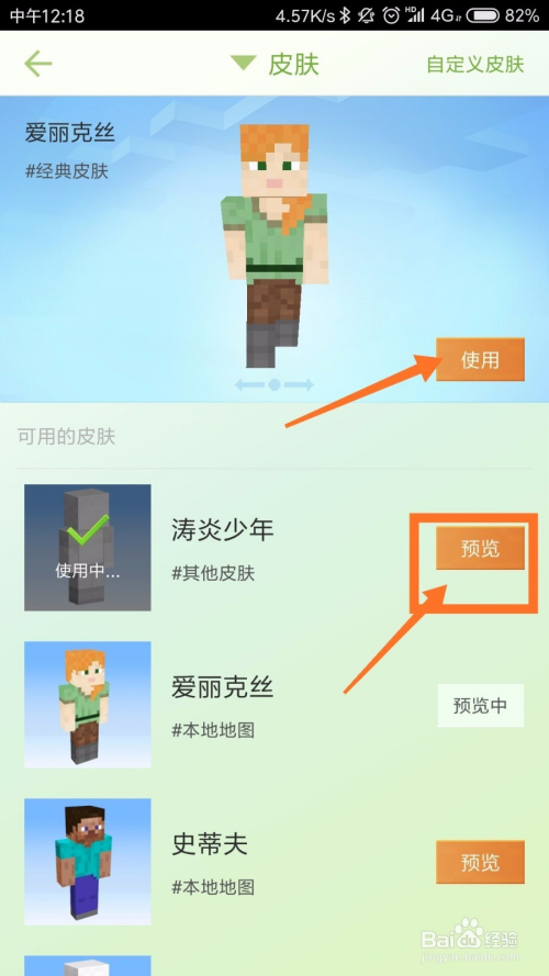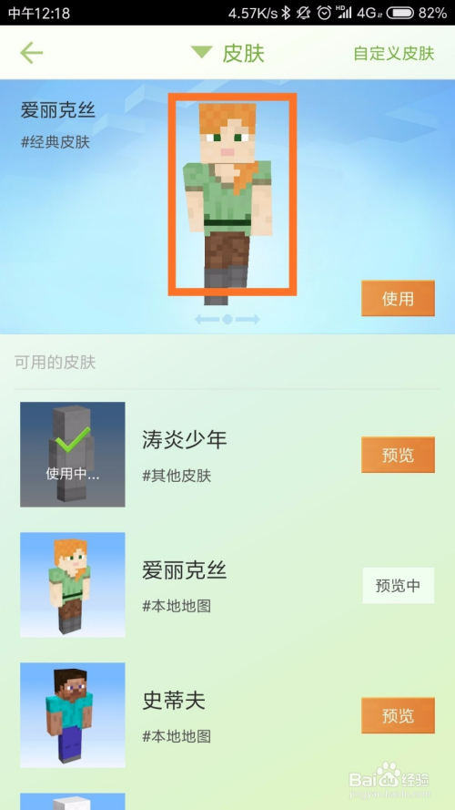 点击皮肤之后,我们可以看到本身拥有的皮肤,我们点击一个新的皮肤,点击预览,若是喜好的话,点击利用即可,如下图所示。
