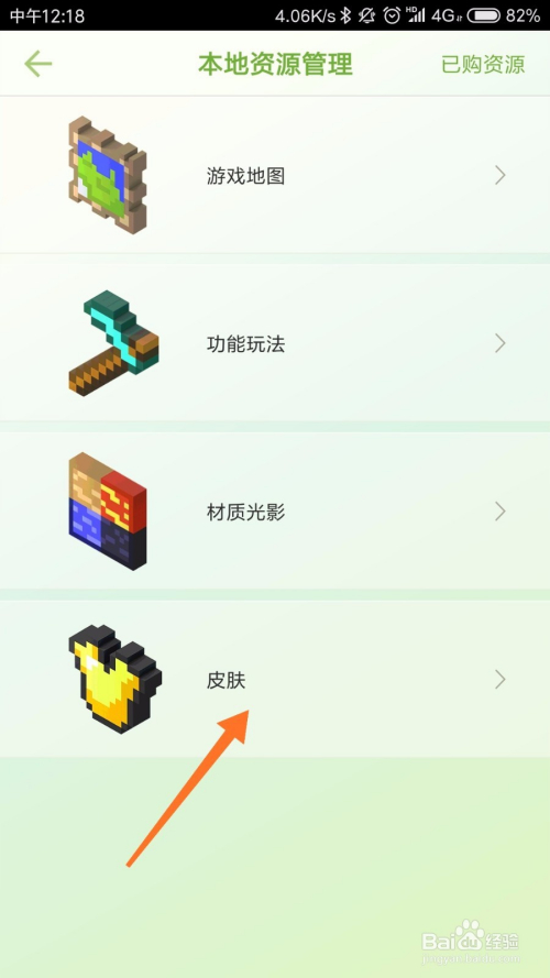 进入当地资本办理之后,我们可以看到游戏地图,功能弄法,材质光影和皮肤,点击皮肤即可,如下图所示。