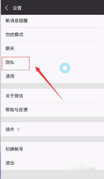 设置界面点击隐私进入,如下图所示