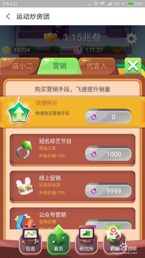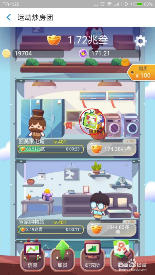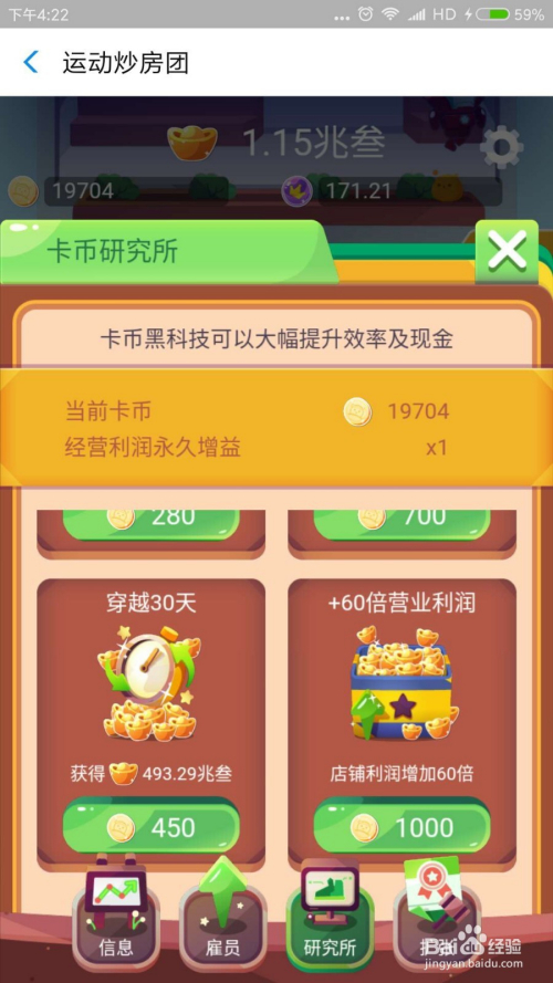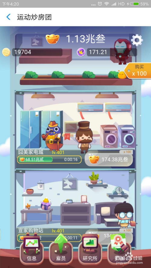 进入游戏起头建造最下面的健身房,建好今后顿时点击雇员,采办第一个雇员“边缘人”,让雇员主动给你收金币。一次类推,等金币多的时辰采办上一层的建筑。